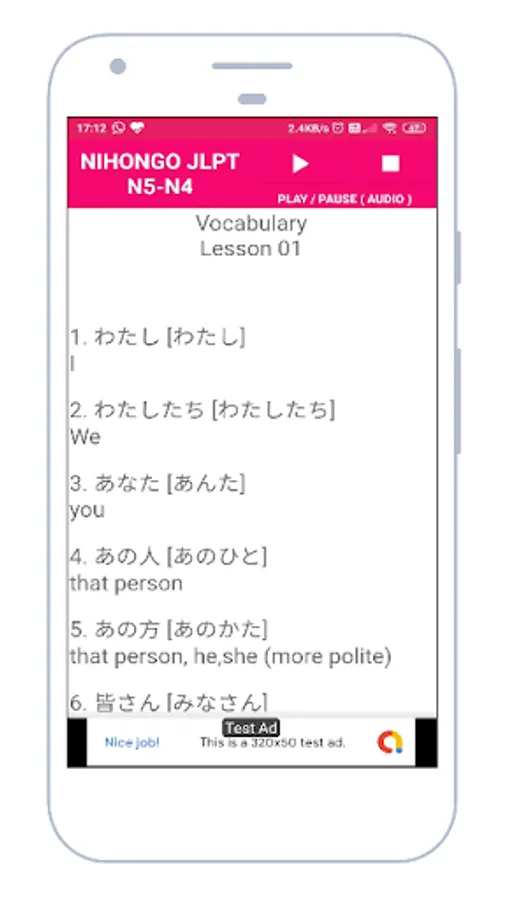 Learn Basic Japanese For JLPT N5 And N4 Level You Can Install This Free App. We Have Added Reading notes As well As Listing File Also To Improve Your Japanese language . To use This Application Make Sure Your Internet Connection Is Turn on.