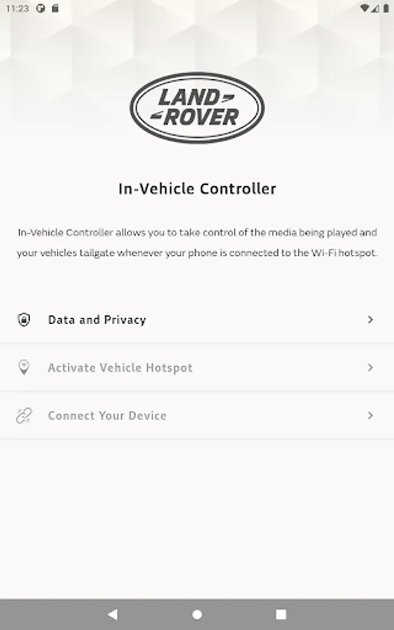 In-Vehicle Controller enables you to adjust vehicle media controls. You will need to be seated within your vehicle and also connected to your Wi-Fi Hotspot.