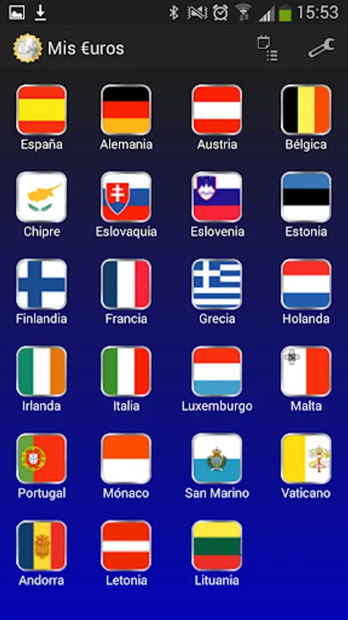 The main window offer a quick view all of Euro countries. A long click over the country flag provide the Euro coin country information.