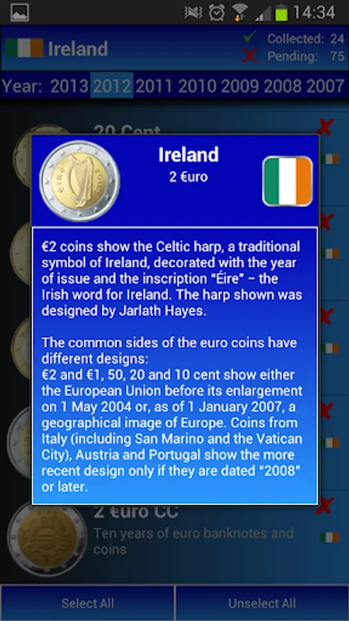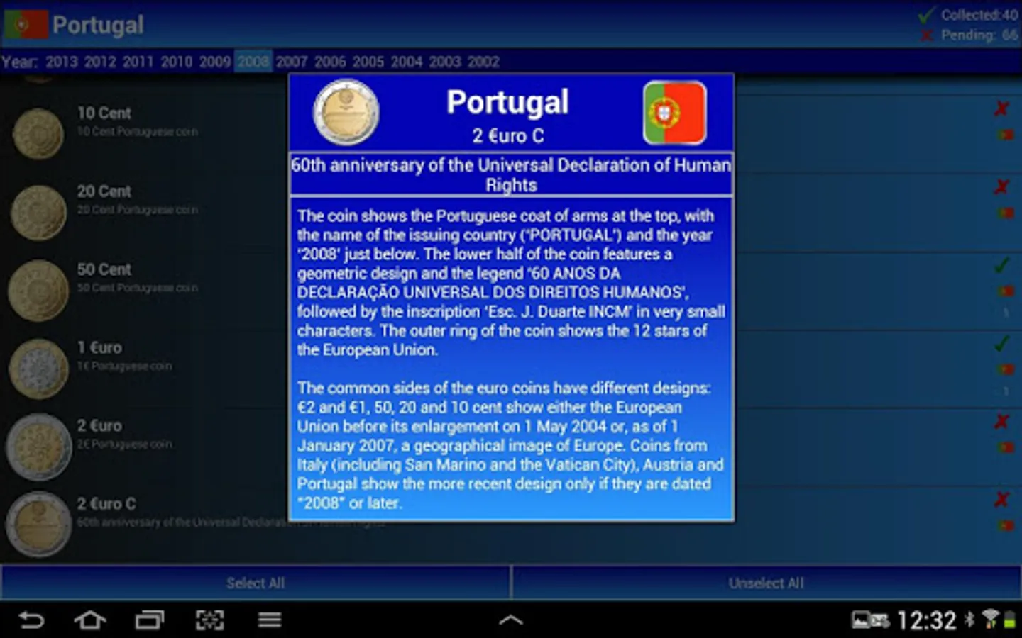 Furthermore, a complete database of the coin information is available inside this application, 2€ commemorative coin included.