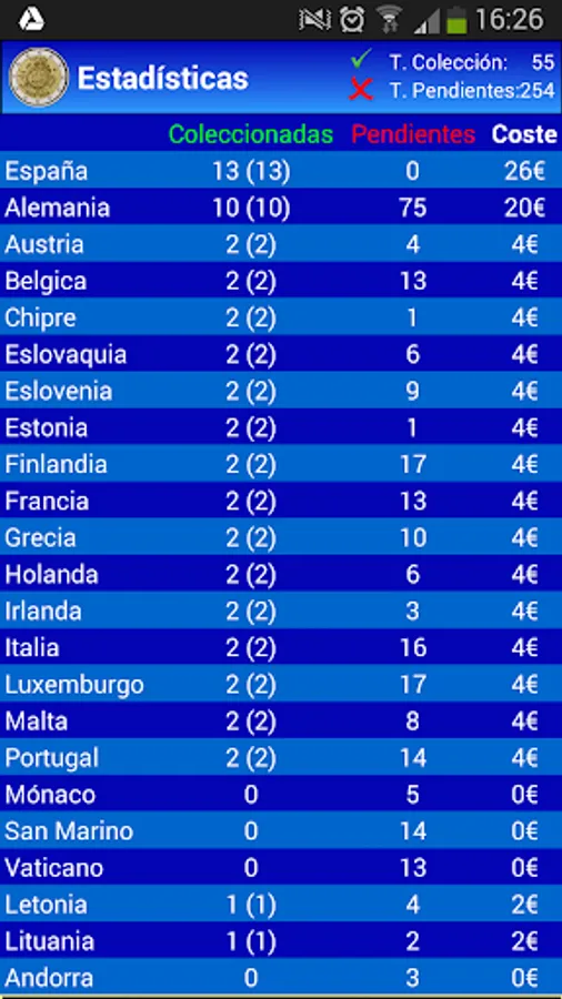 My 2Euros offer you the possibility of manage your €2 commemorative coin collection taking into consideration the different €uro countries with their different mints. In addition, a quick view is included to see an Euro coins resume for a country of your Euro collector.