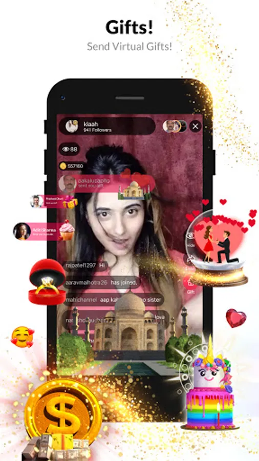 Users can watch a host of Live streams from all over the world. New and popular broadcasts streaming live 24 hours a day. Watch talented, fun and friendly people from all over the world broadcast live. As a viewer watch and follow your favourite streamers, chat and send virtual gifts to your favourite streamers.