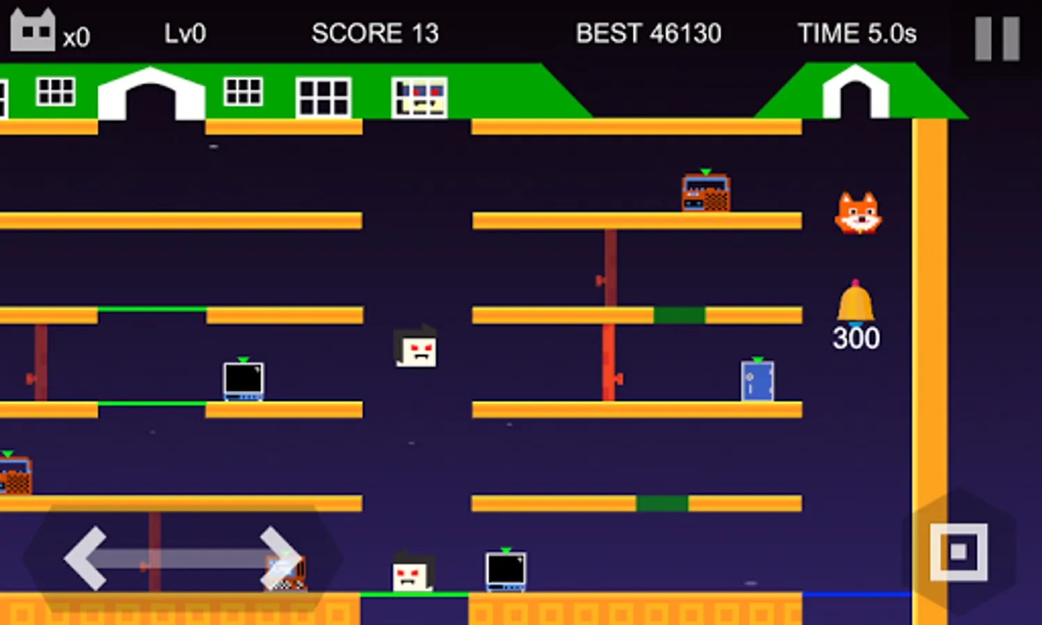 The scene interface of each level has a different level design, and the player presses the buttons at the bottom of the screen to control the movement of the character.