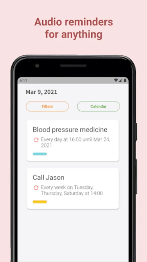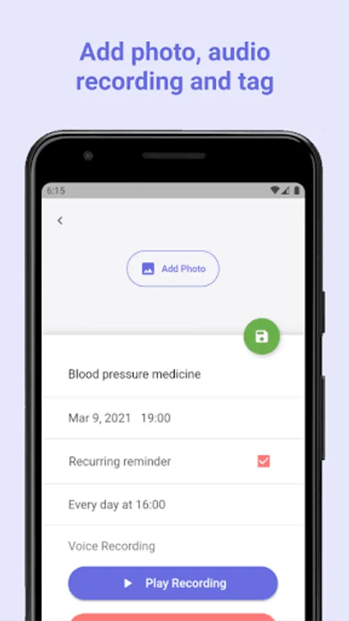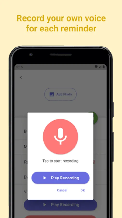 Optionally, the app can also work with our proprietary Weminder hardware device (purchased separately), allowing easy customized voice message alarms for loved ones. When syncing the app with the device over Bluetooth connection or updating the hardware device firmware, foreground service would be required.