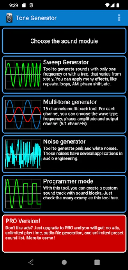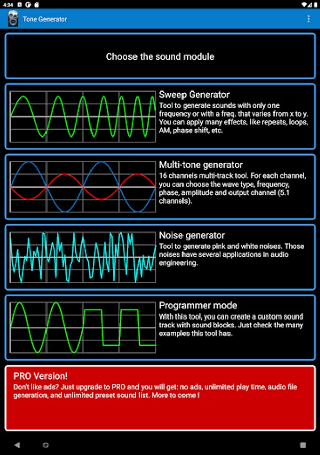 ● Many, many pre-programmed sound tests, ready to be used by the sound professional
