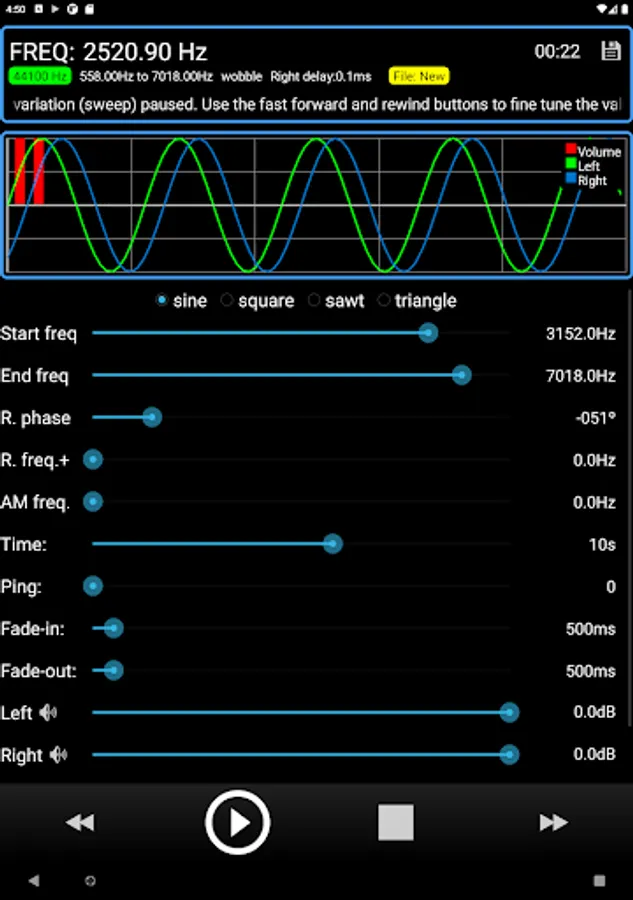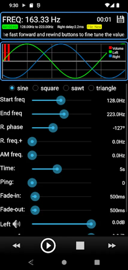 ● Real time manual frequency increment or decrement (accurate, without pops and clicks)