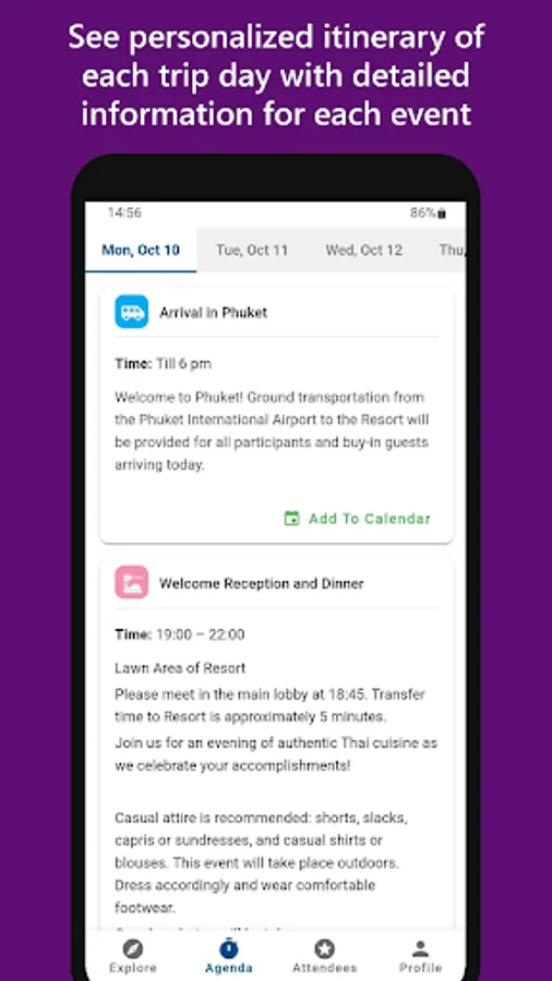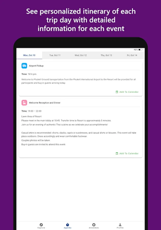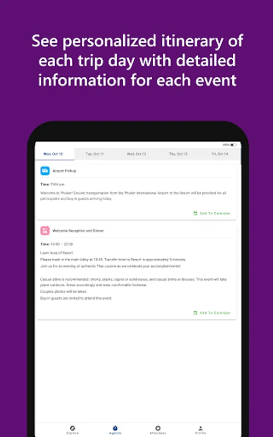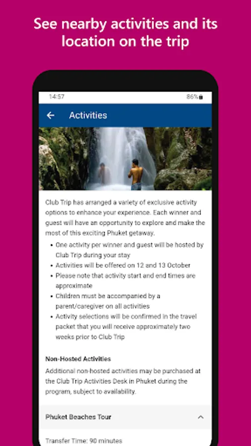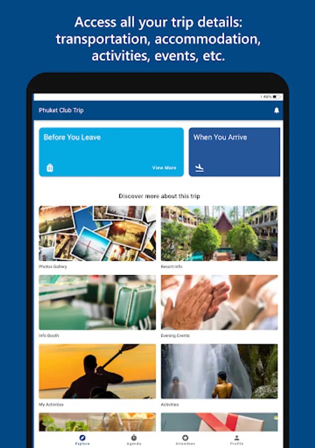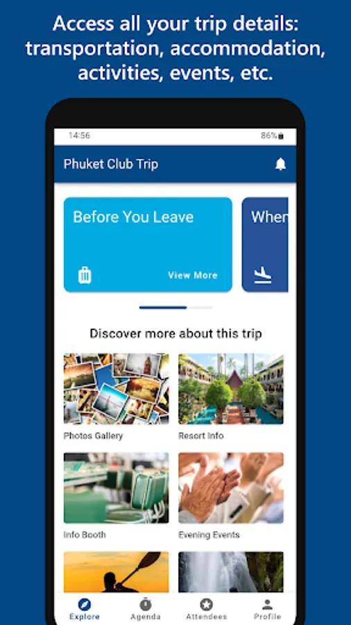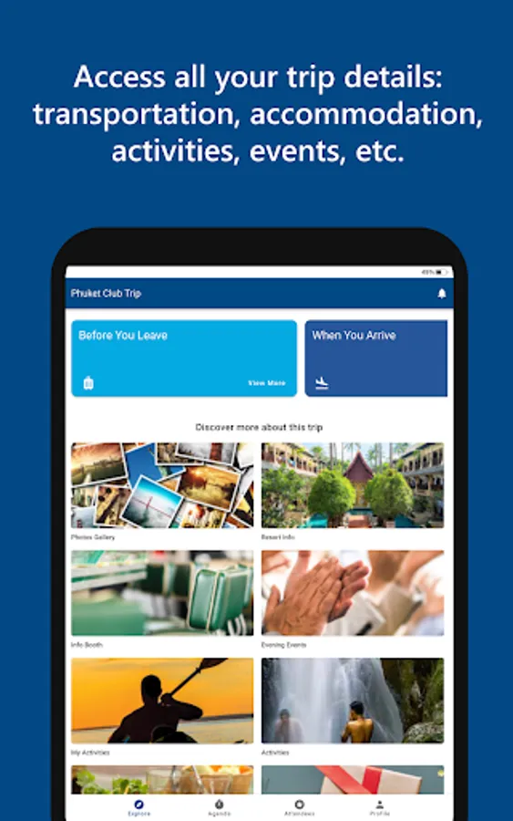 • Access all your trip details: transportation, accommodation, activities, events, etc.