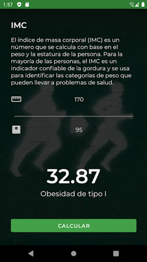With this application you can calculate the BMI in a very fast and easy way, you just have to enter the weight and height.