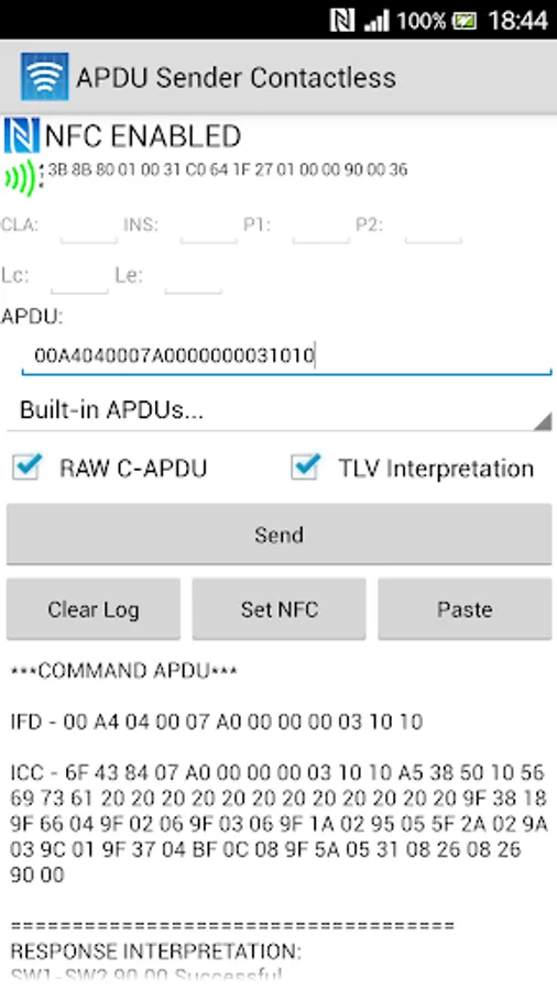 ★ It also includes a TLV response interpretation which helps you to understand your card's response with some