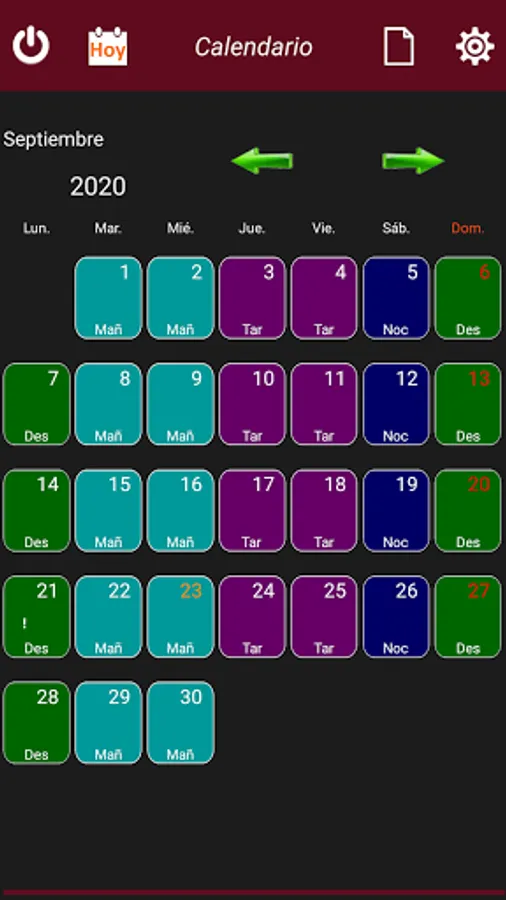 Starting from a Calendar as the initial screen where you can clearly see what shifts you have worked or what you have to work the following days or months.