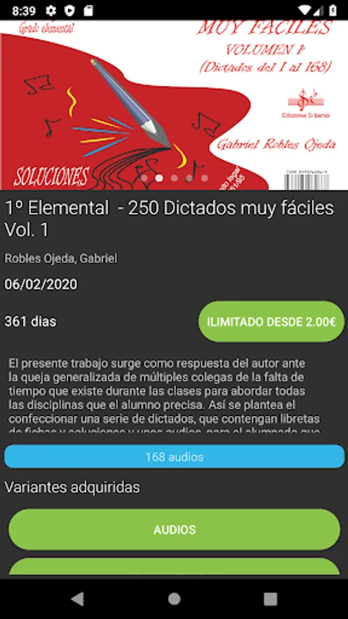 In this application you will be able to have the audio of the musical methods of Ediciones B flat that you have acquired (we do not have the CD). We also offer you the possibility of acquiring, for your reading and work, most of the titles published by this publisher.