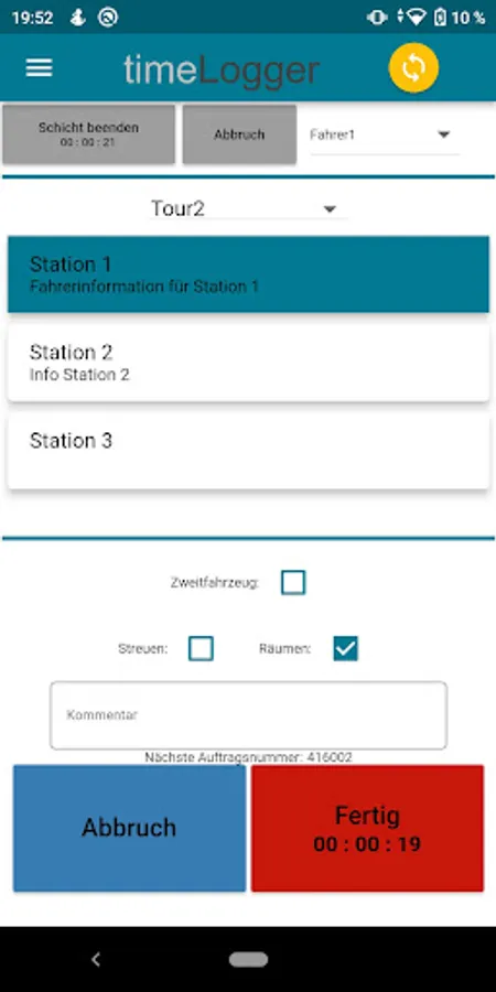 The idea behind the timeLogger winter service app is that every vehicle in a fleet used for winter service is equipped with a tablet on which the app runs. (We recommend a 10 inch tablet).