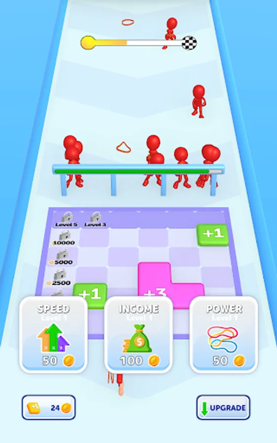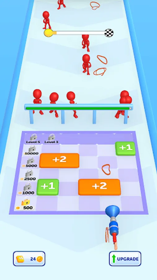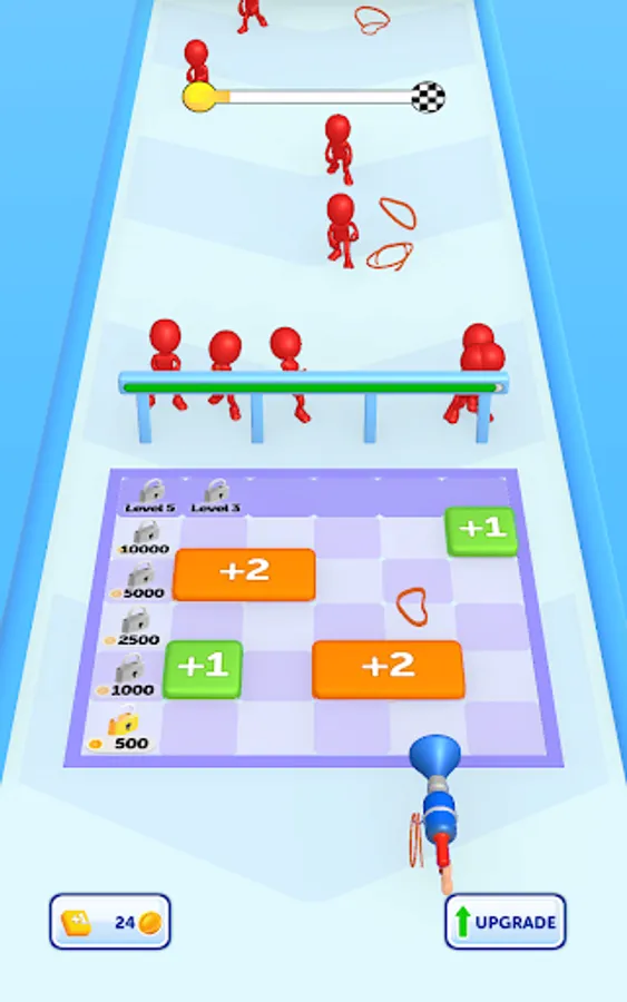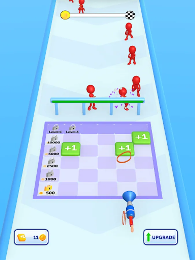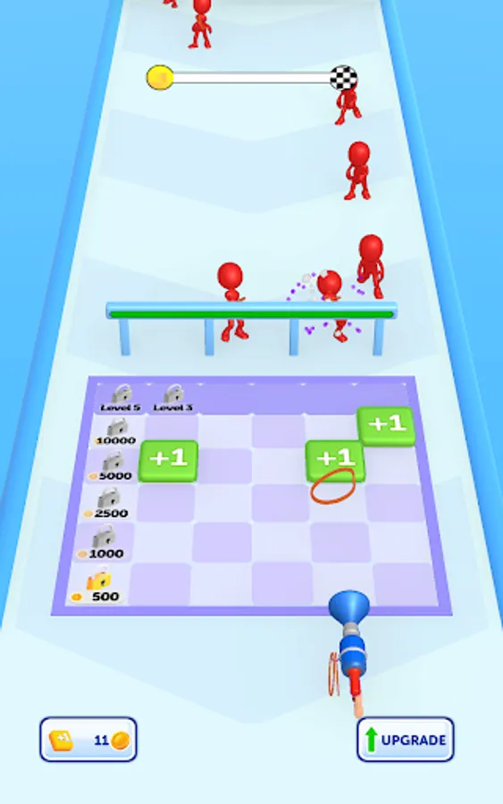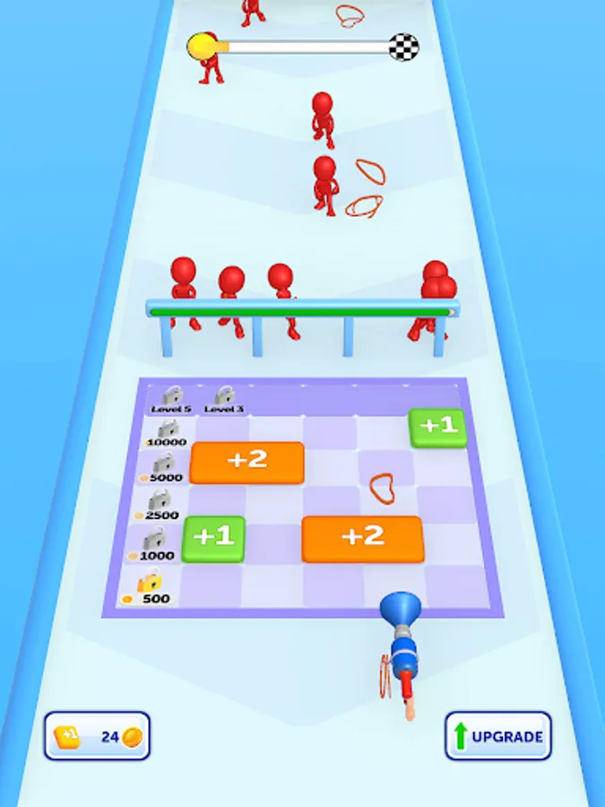 As you annihilate your enemies, earn money to upgrade your weapon, making it stronger and more effective. Merge blocks in the multiplier area to get more and stronger rubbers, and maximize your defense capabilities. Your strategic prowess will be put to the test as you position and move your gun to where itโs needed most.