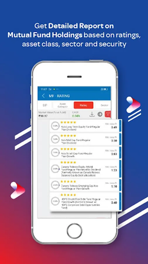 • Get detailed report on Mutual Fund holdings based on ratings, asset class, sector and security