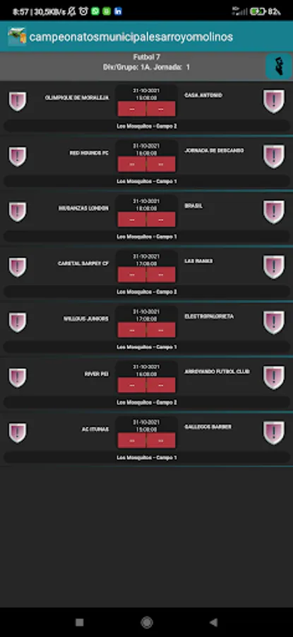 The notifications / notifications of upcoming matches and absences are made once a day, at 9:30 p.m. (time set by the organization). The absence notice is indicated in the team management section (web interface url www.compedadesmunicipalesarroyomolinos.org). We advise the absence to be indicated taking into account the time of notification, as far as possible.