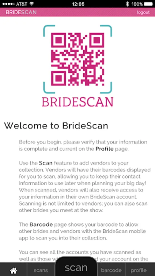 BrideScan is designed to link up wedding professionals and qualified brides based on needs, availability, and contact information. Now you can stay organized during each bridal show! Simply scan a participating party's bar code to instantly swap contact information and store other important details in your account. Log in to your account online for full access to all the contacts you've linked up with at a recent bridal show!