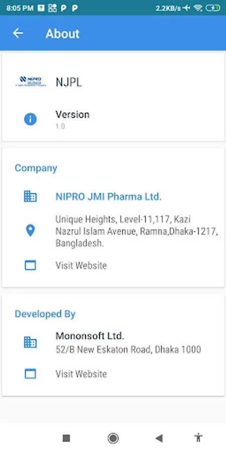 NIPRO JMI Pharma Ltd (NJPL) is one of the robust and reputed pharmaceutical companies in Bangladesh.NIPRO JMI Pharma NJP started its journey in 2012 with collaboration of NIPRO Corporation, a big giant MNC (Multinational Company) based in Japan. NJP engaged in manufacturing and marketing of pharmaceuticals products in compliance with cGMP by WHO (World Health Organization).