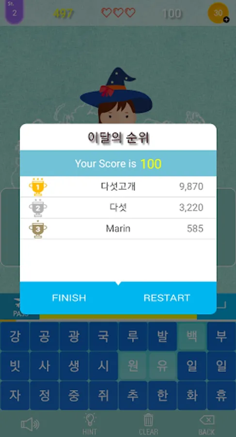 - Score = Basic score (previous scorex0.5) + Score