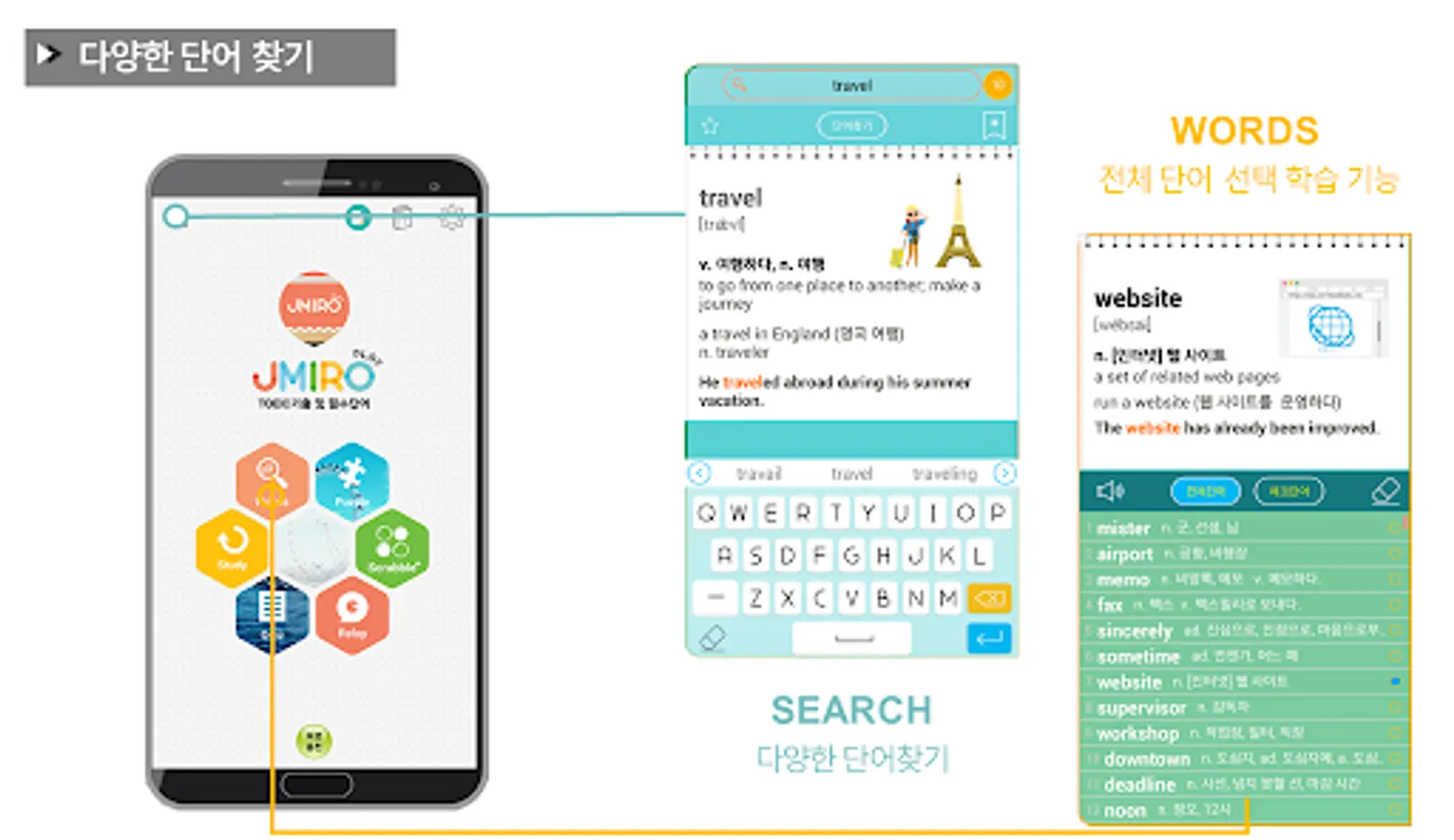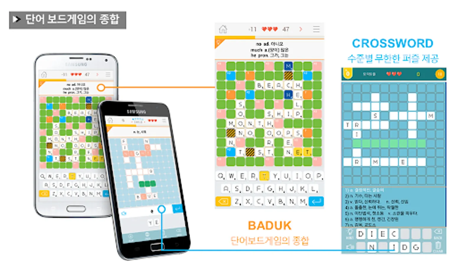 Have fun learning words through quizzes, crosswords, puzzles, and Go.