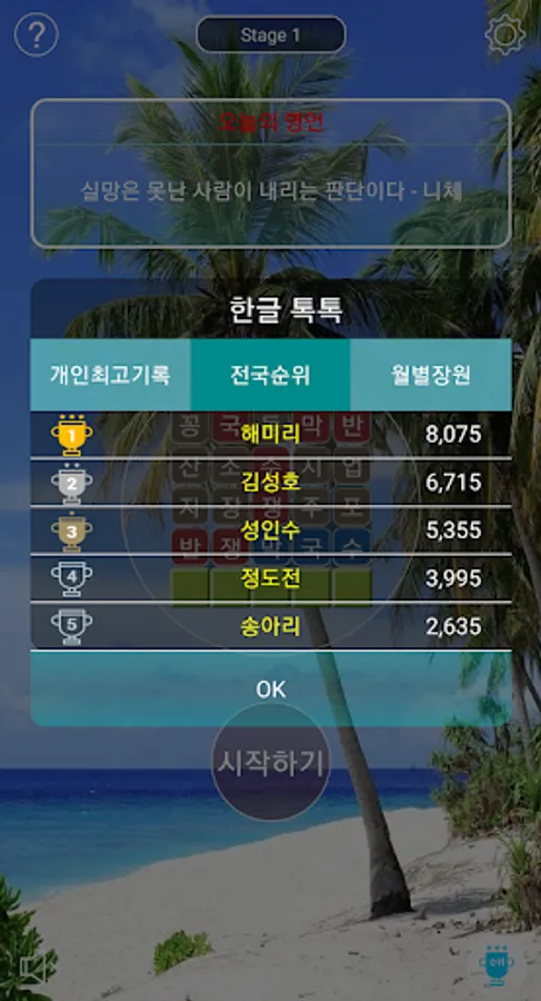 1. It's a game to find five Korean words that are given every time.