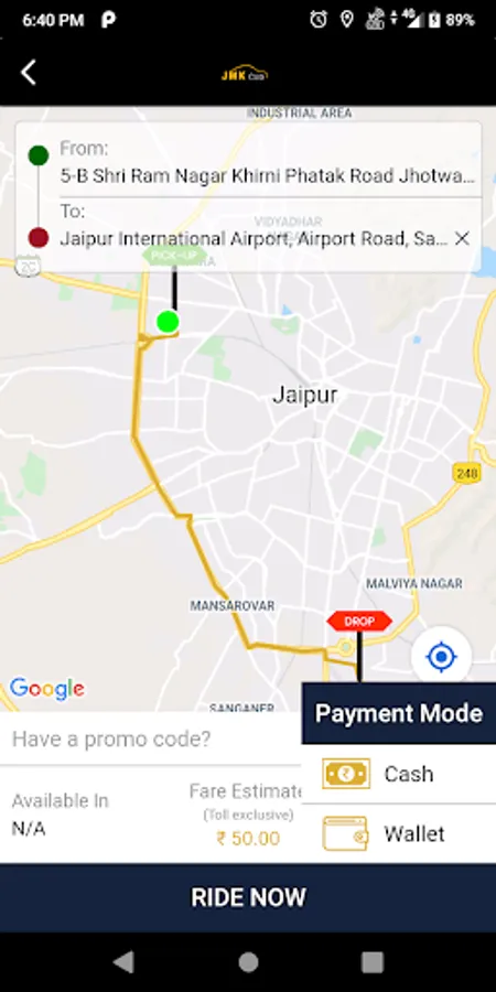 • Set your pickup location (E.g. Home, Office, Airport, Railway station, current location, etc.)