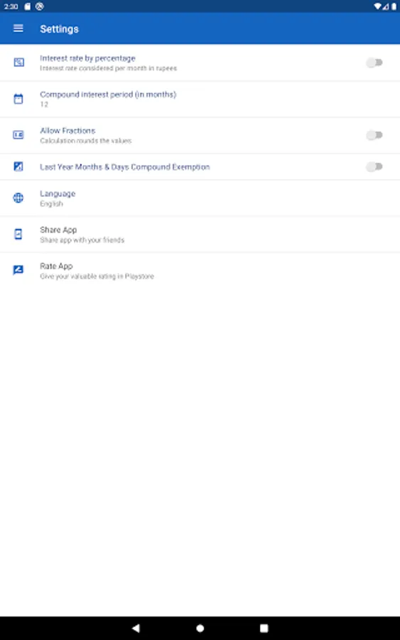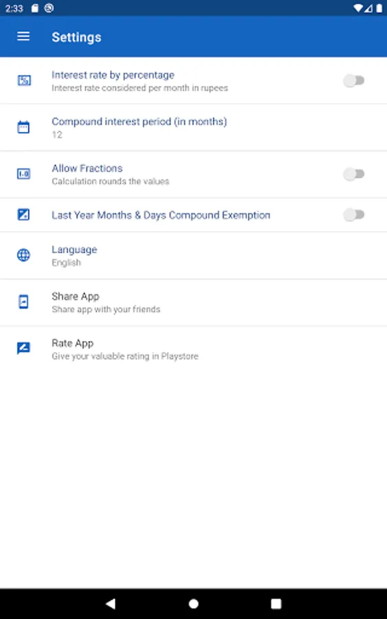 ** Application calculation was implemented based on the village interest calculations based on our personal understanding only, it does not consider any of bank or any other financial institution calculations. It may not suite for some of your personal and customize calculations.