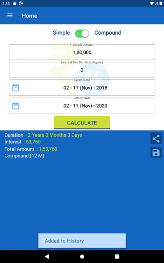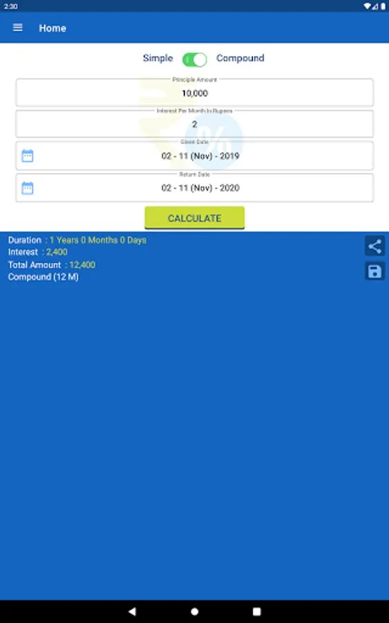• At the time of Compound interest, you can also make compound interest exemption for the last year months and days.