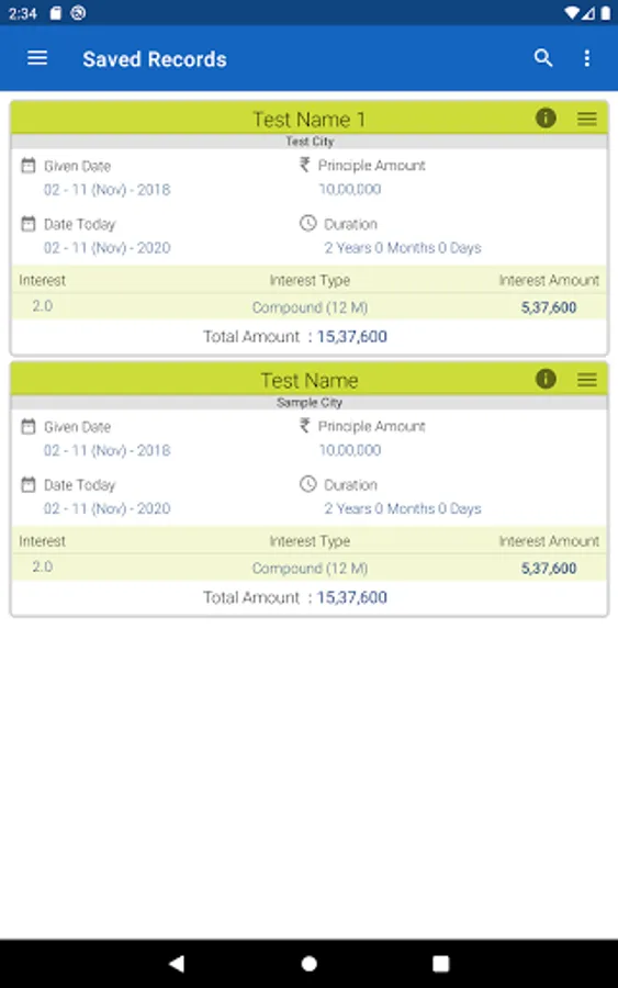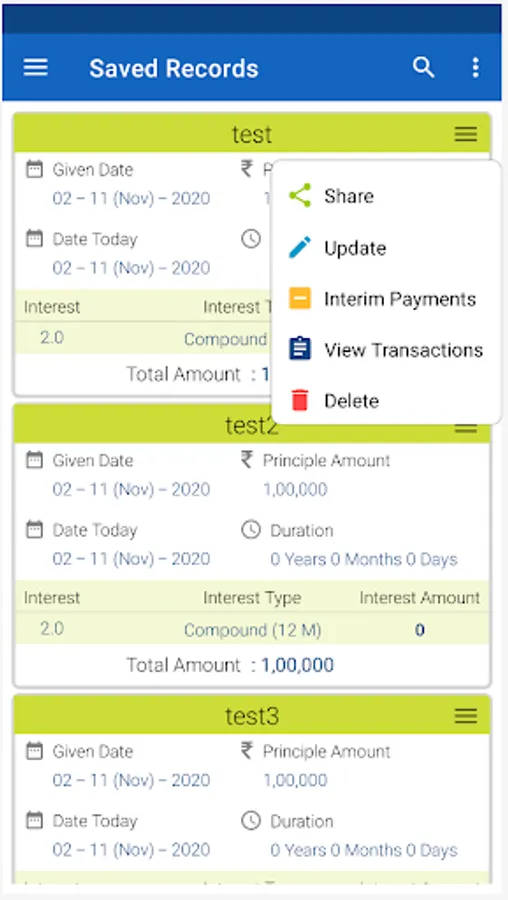 4. Save the record for future reference (Records calculates interest for today’s date automatically)