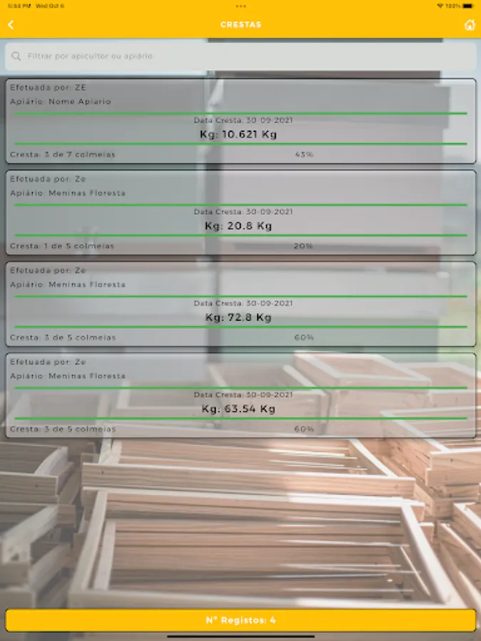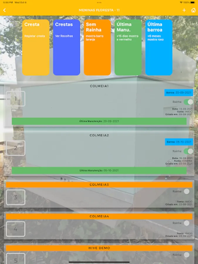 Allows you to add zones, apiaries, hives, maintenance, crests, location of each apiaries, etc...