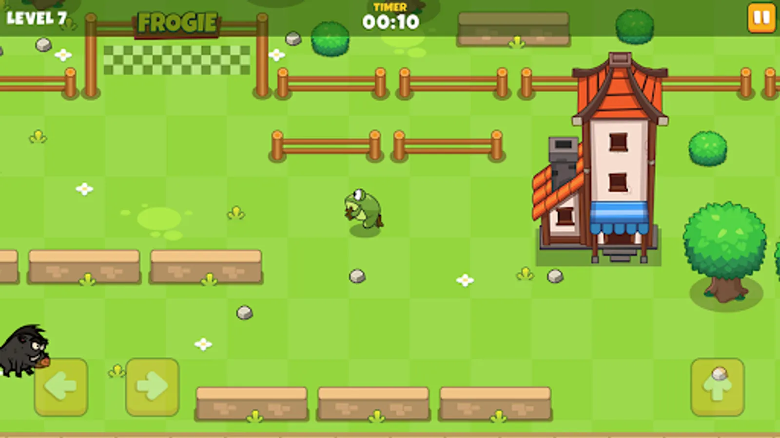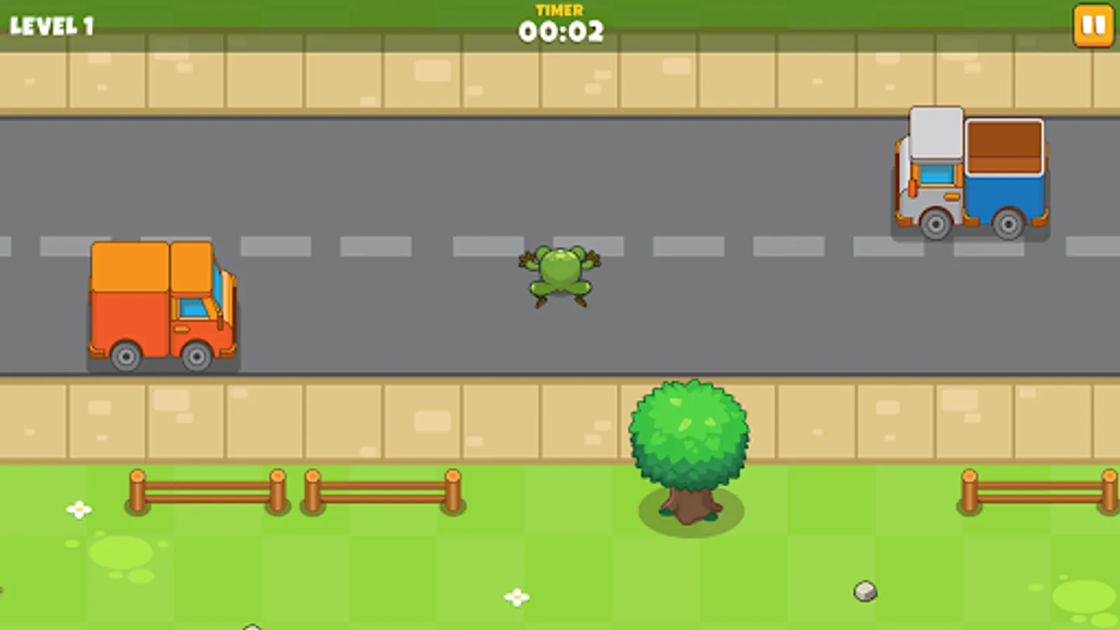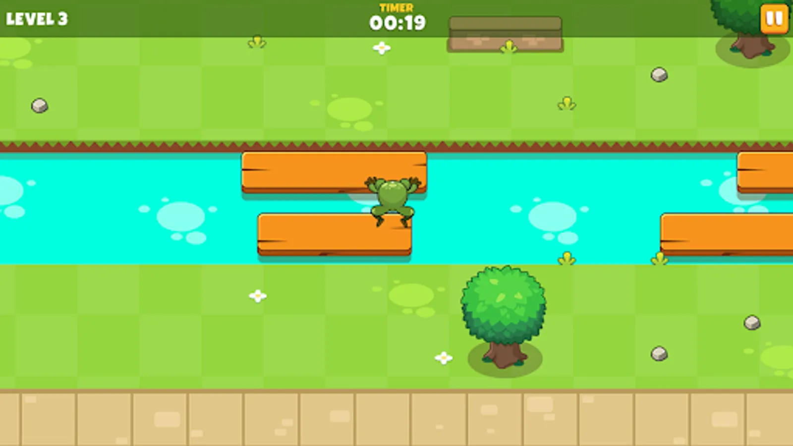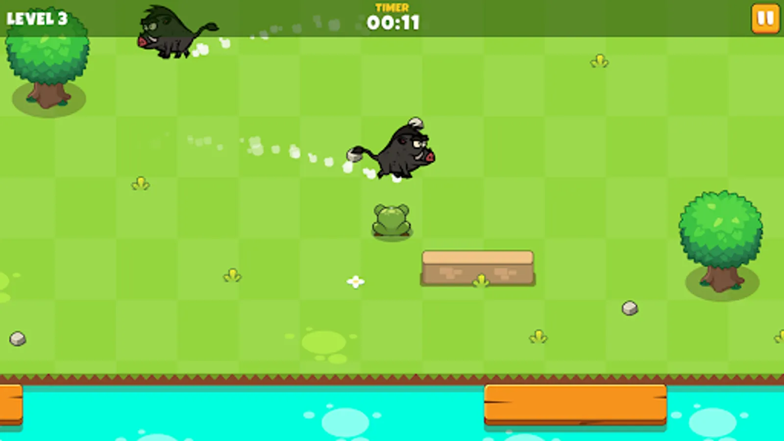 “Frogie Cross the Road” is a fun game where you have to cross roads, rivers and countryside. Help the frog “Frogie” to reach the end of each level and beware of cars, wild boars and rivers. You must dodge the cars and wild boars so you don’t get hit and you must also jump over the pieces of wood on top of the river so you don’t fall into it. Try to reach the end of each level before the time runs out.