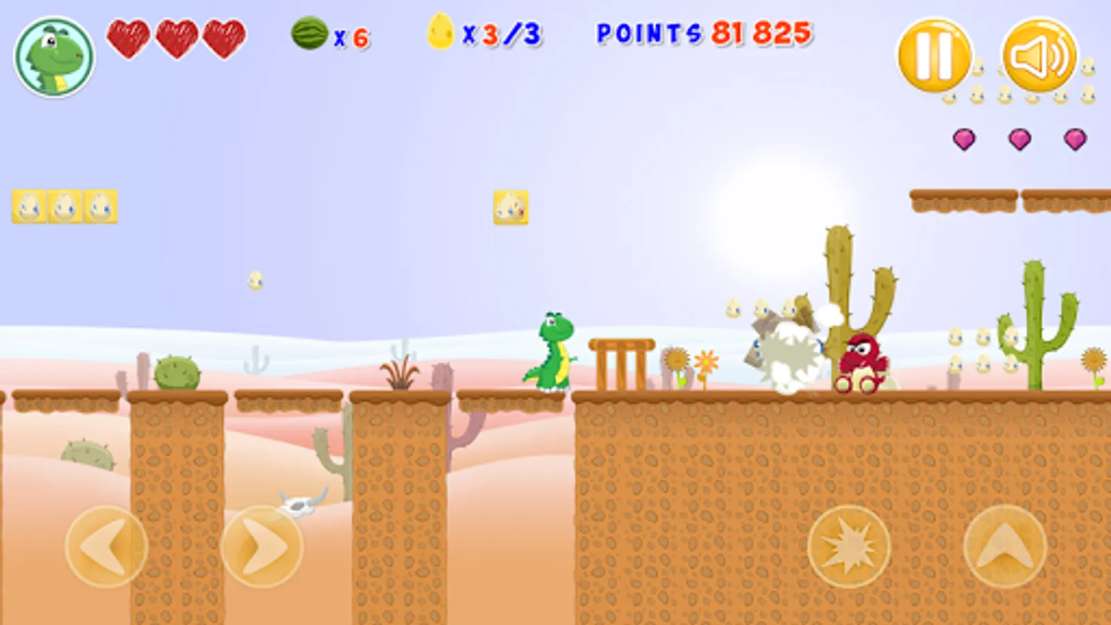 Platform adventure game, where the little Dinosaur must cross the valley of fear, where he encounters many challenges.