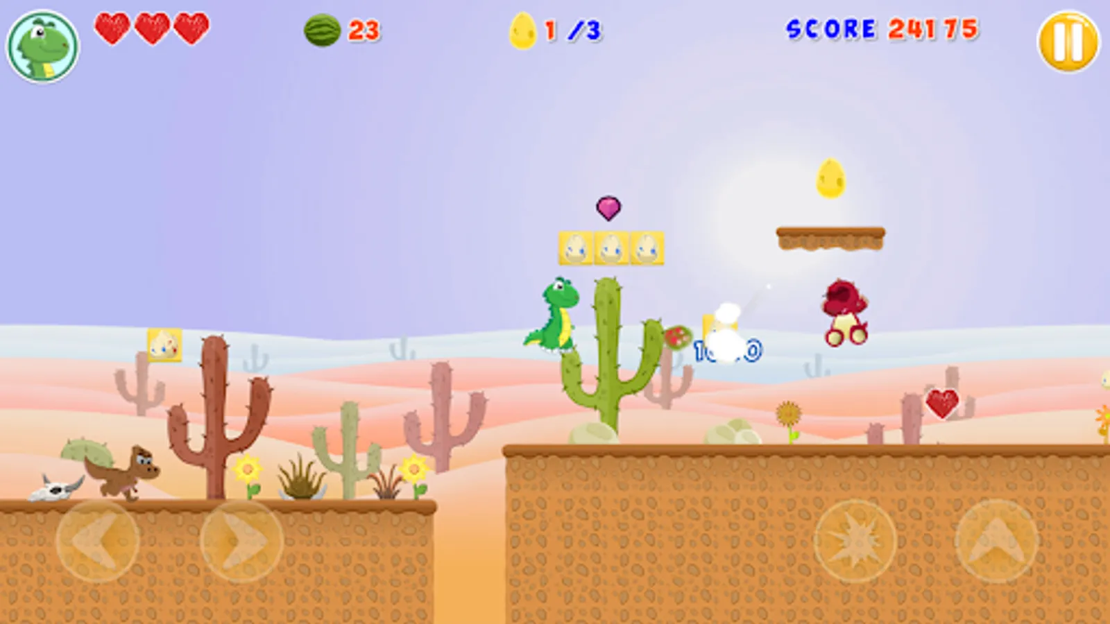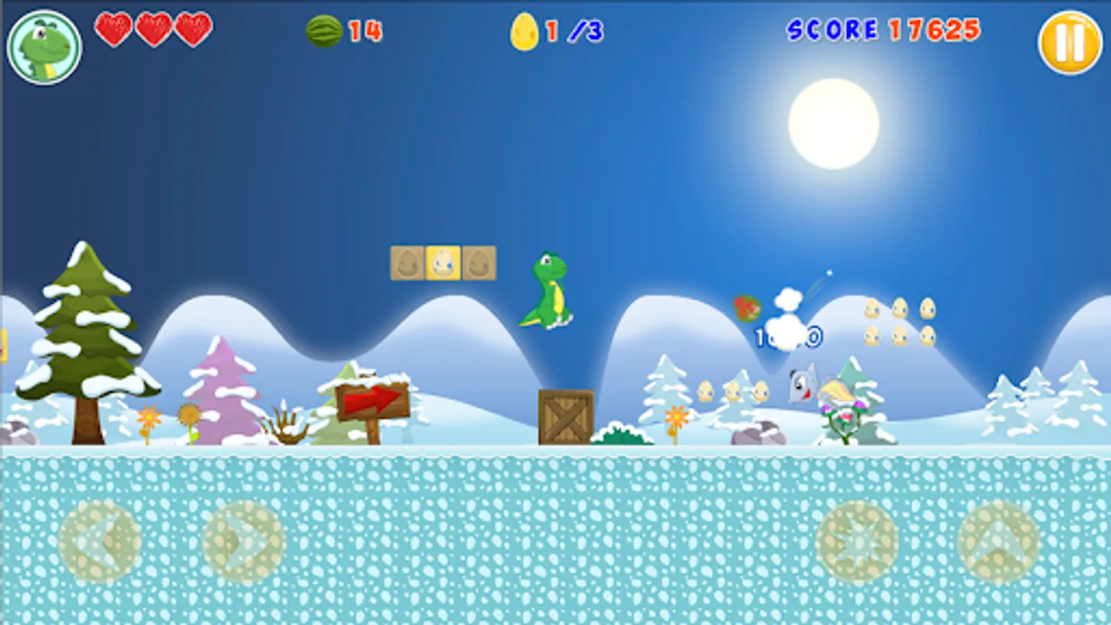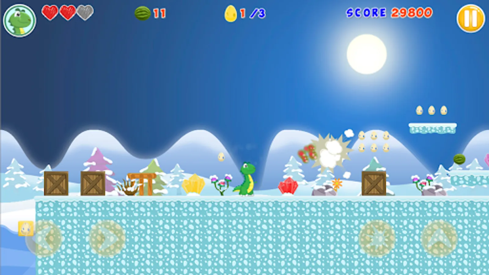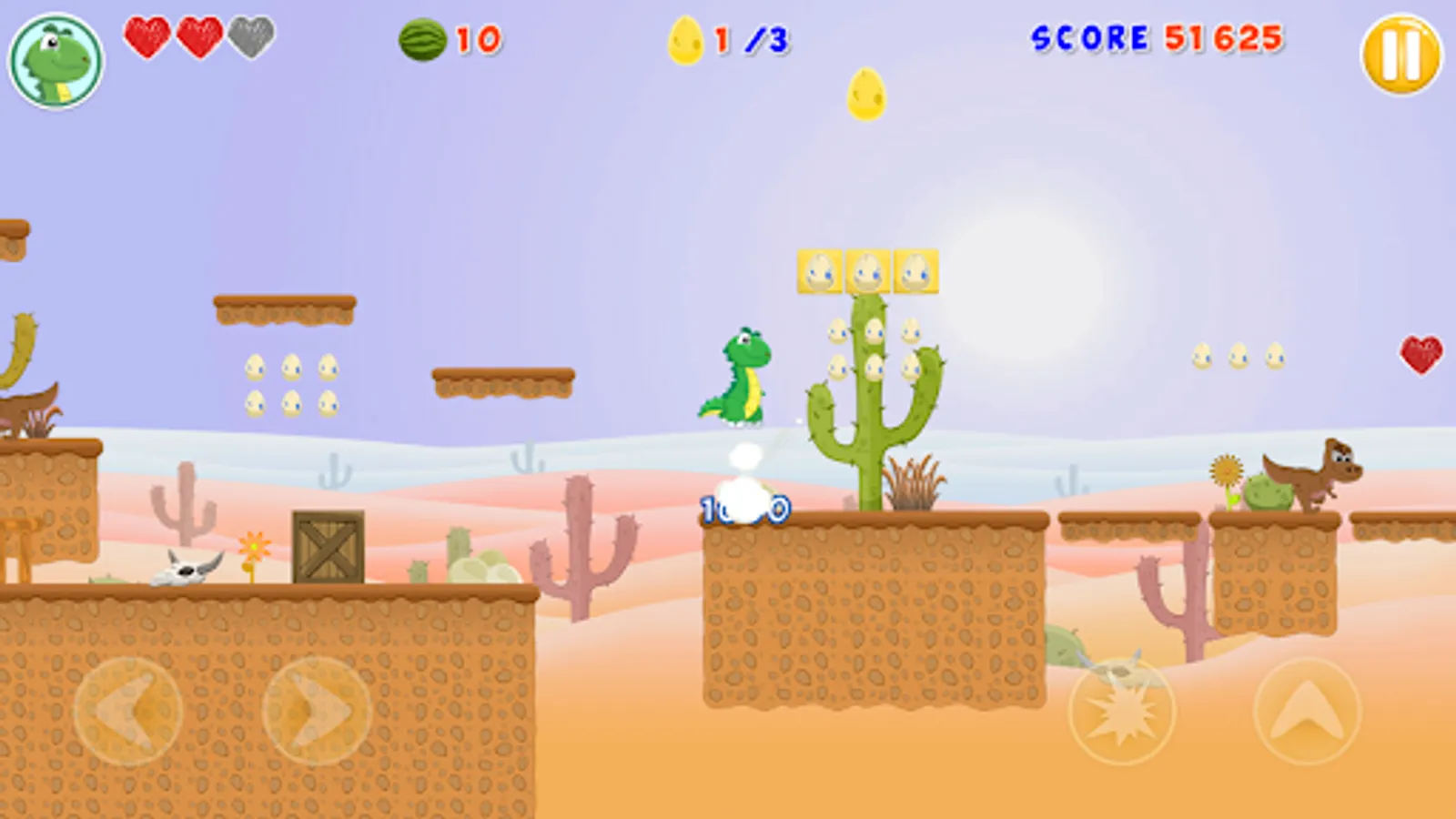 - Adventure platform game, where the little Dinosaur must cross the forest, desert and snow forest, where he will find many challenges.
