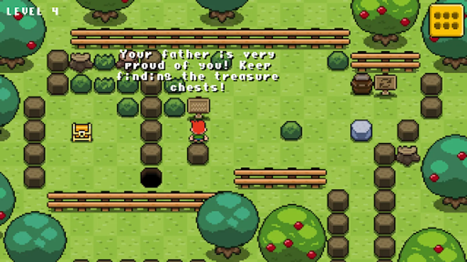 “Stone Smacker” is a Puzzle / Top Down game where the player needs to push the stones into the holes, to clear areas and find the treasure chest at the end of each level. Help the little redhead find all the treasure chests to help the people of his village. Solve the puzzles and have fun with this game!