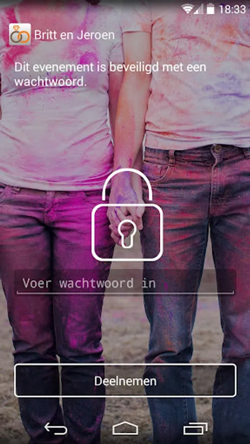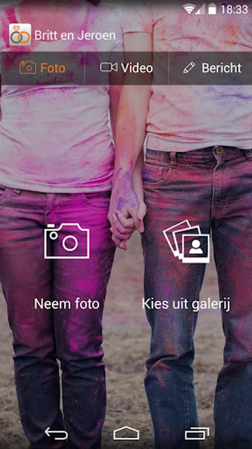 Personal app for the loyalty of Britt and Jeroen. All guests can use this pictures and videos with them and sharing each other. In this way, the newlyweds can also relive their wedding day through your eyes.