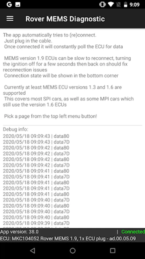 This app works with MEMS ECU versions 1.3, 1.6, 1.9, and 2J.