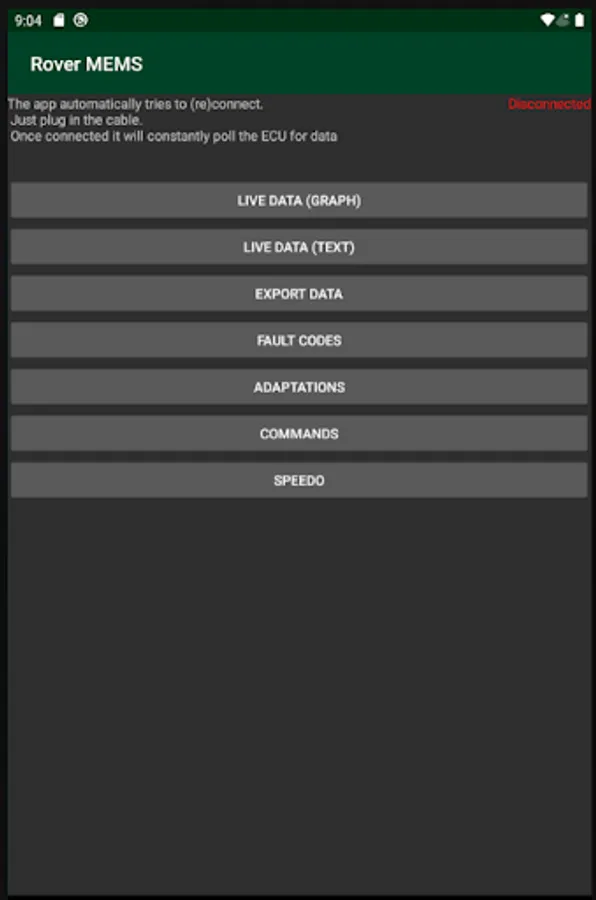This allows diagnostic and data logging for Rover MEMS ECUs.