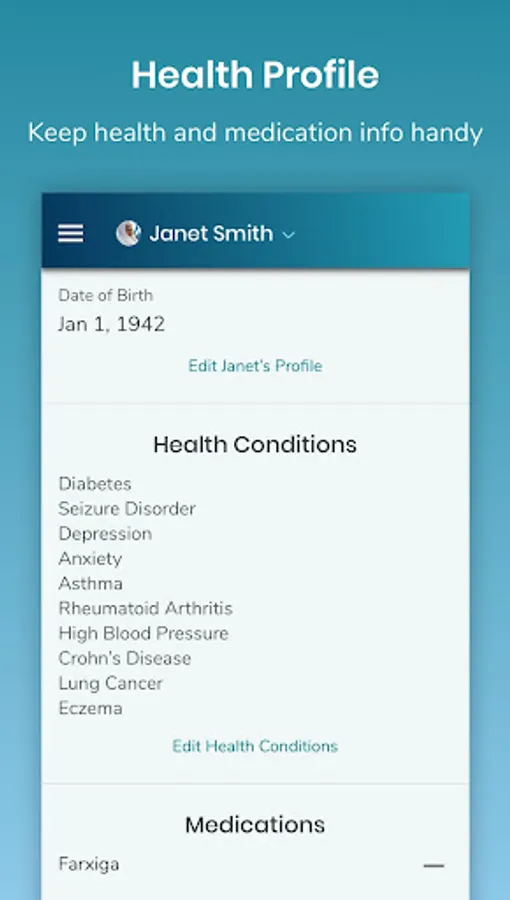Organize the medical needs of those you care for easily and effectively in one place, with Connected Care's collective tracking features.