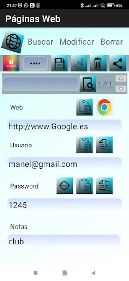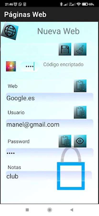 A secret code is configured and gives us access to a password manager where we can safely store our passwords and documents.
