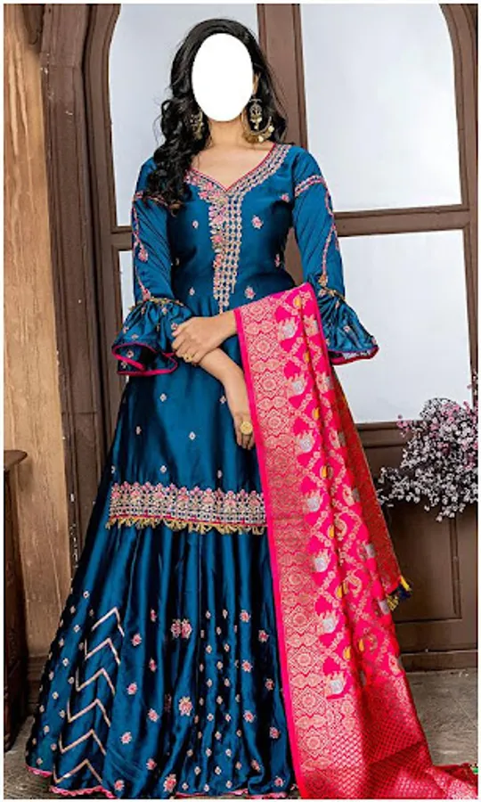 We provide more fashionable and attractive stylish Sharara in this women Sharara photo editor