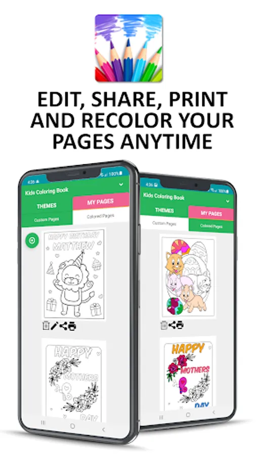 Most kids coloring games don't have any customization options, but with our coloring book, art games for kids you can make them your own by adding text and objects, then share your creations with family and friends.
