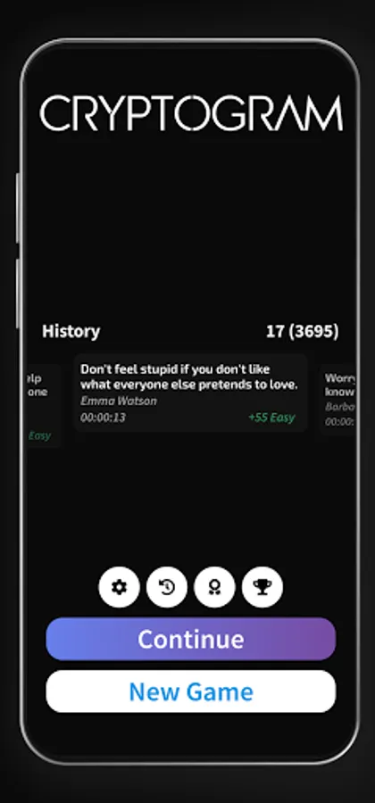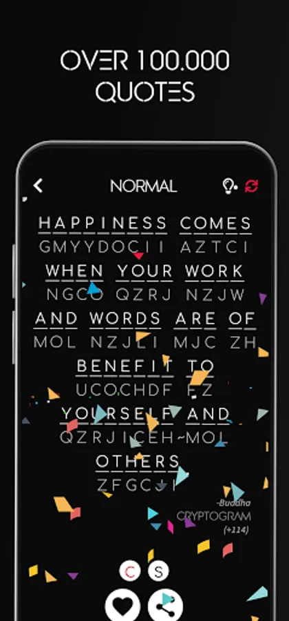 Cryptogram is the perfect game for anyone who loves puzzles and quotes. With hundreds of thousands of quotes to solve and more coming, you'll never run out of challenges. Download Cryptogram now and start decrypting your way to enlightenment!