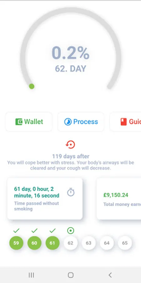 - Watch your pockets grow and see how much money you saved by not smoking any cigarettes.