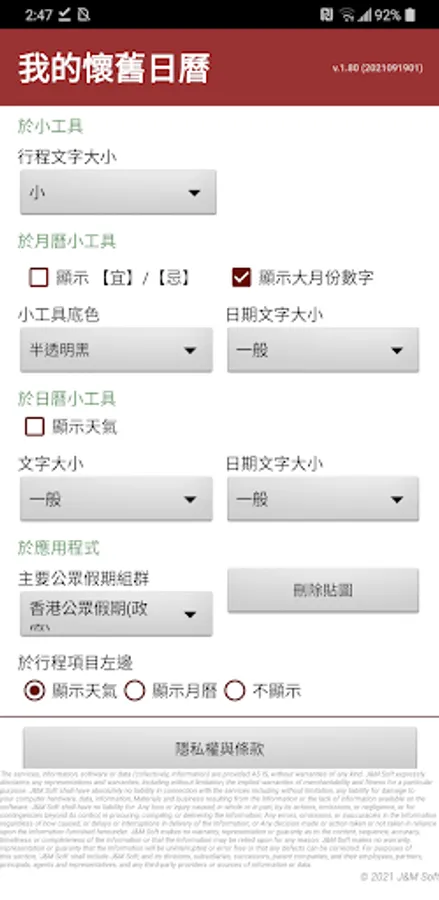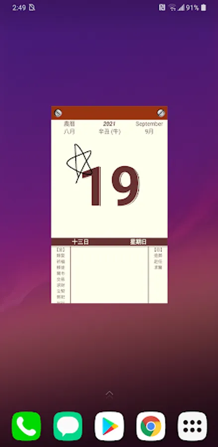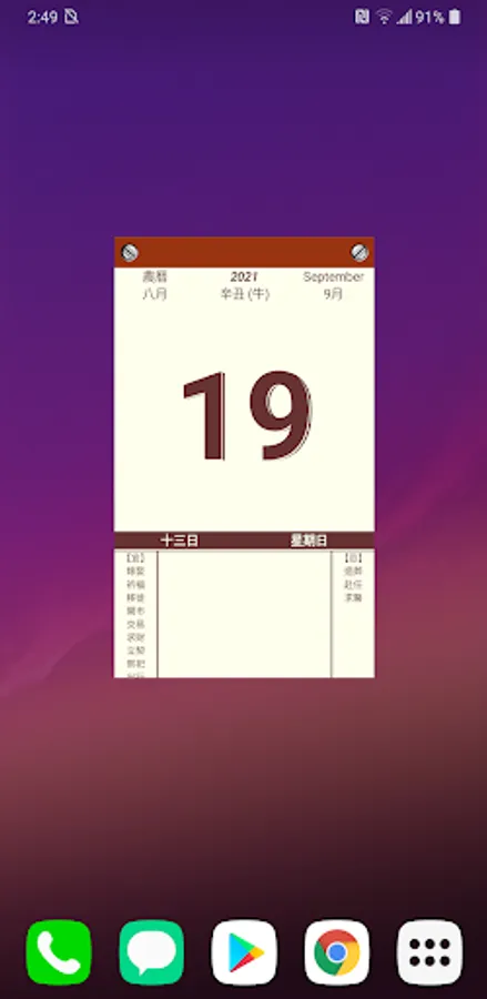 [Main screen widgets] Daily view, Month view calendar widgets that can display the lunar calendar, chinese almanac, daily schedule, holidays, and hand-written notebook.