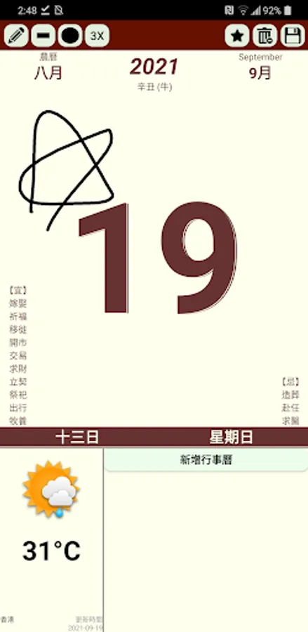 Calendar display the daily schedule, events and hand-drawing notes in Hong Kong traditional fashion calendar look.
