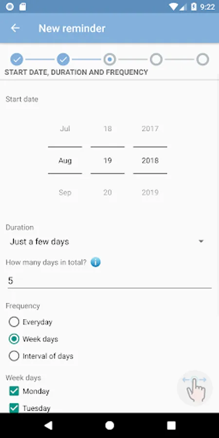 You may set a variety of different times for different days! The medicine may be continuous or not.