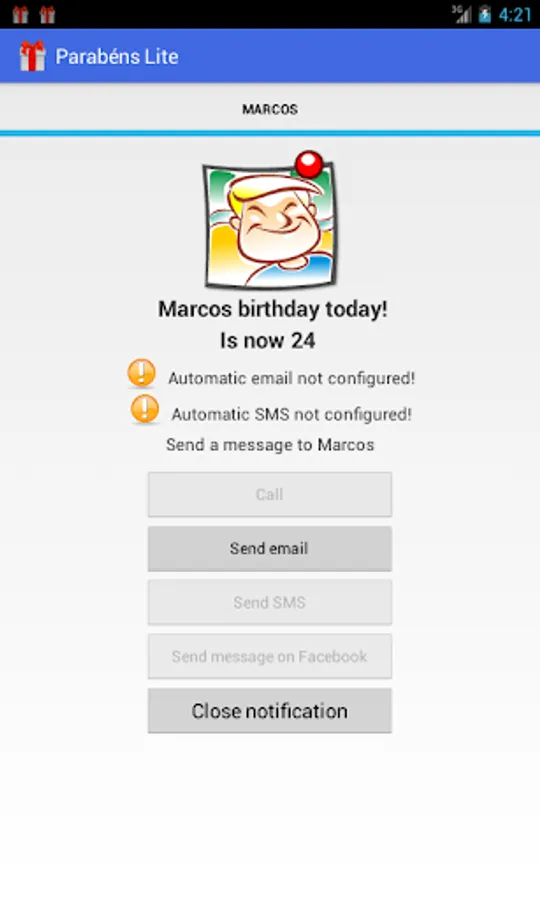 With Happy Birthday Lite, you will never forget people's birthday or any special date anymore! The app warns you with notifications the current and future birthday of people, all according to simple configurations!