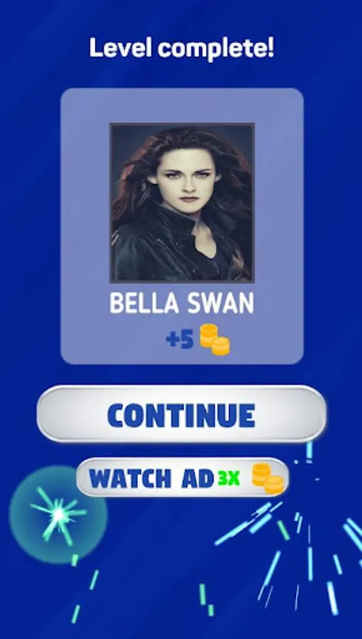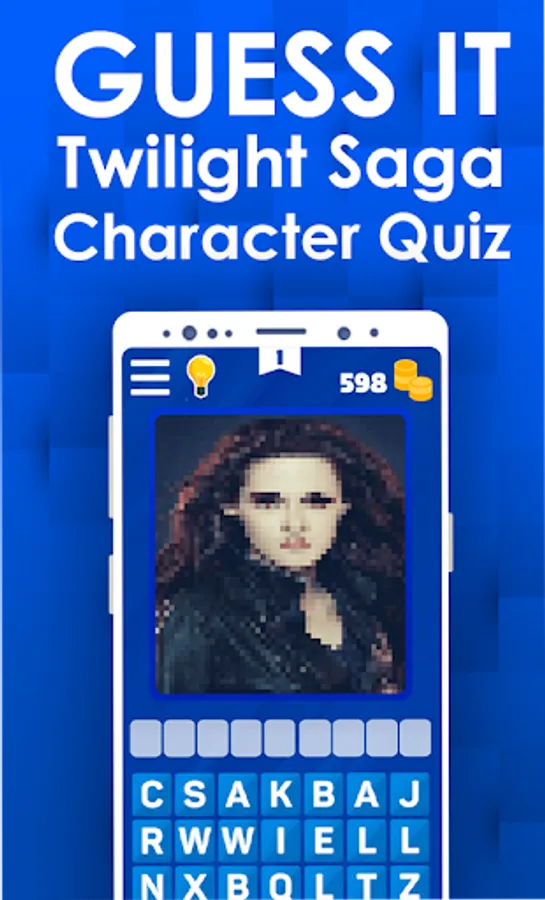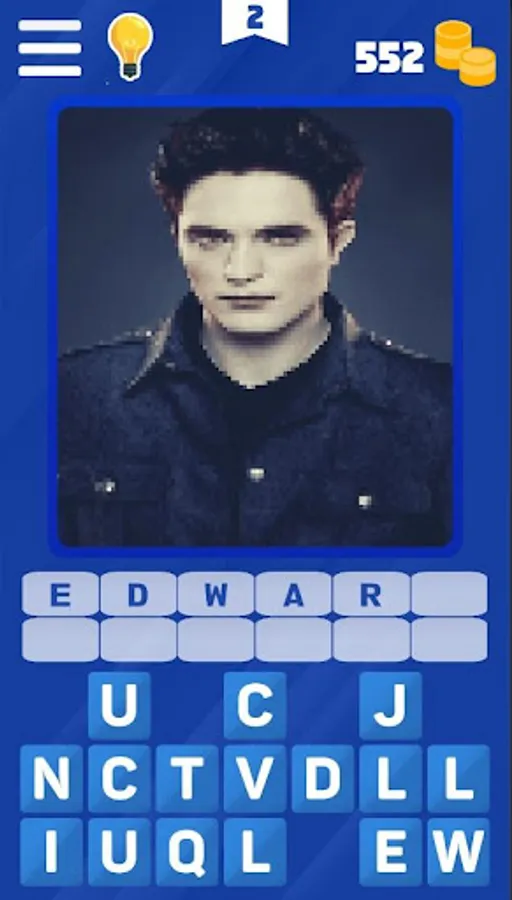 Very easy, touch the picture to get more crear the image and you just have to select the correct letters to complete the name of The Twilight Saga Character that appears on the screen and once you have passed the level you will receive a bonus with which you can obtain hints in the next levels.