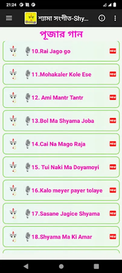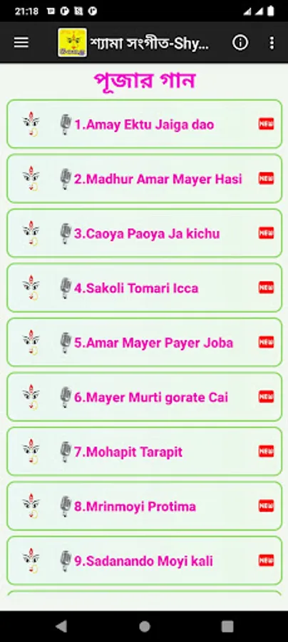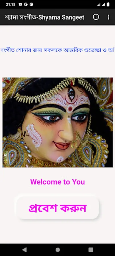 এই অ্যাপের মধ্য সবচেয়ে জনপ্রিয় সকল ূShyama sangeet/kaali gan/khali song/ma kali song/puja song দেয়া হয়েছে-