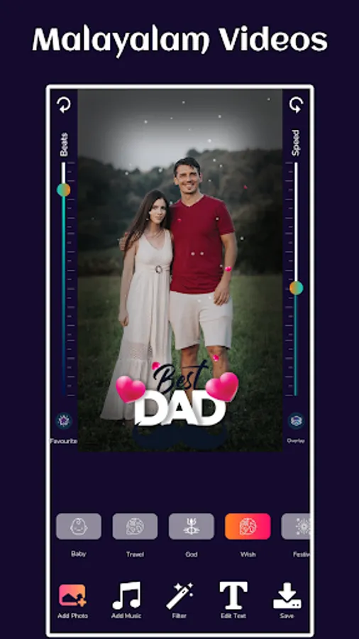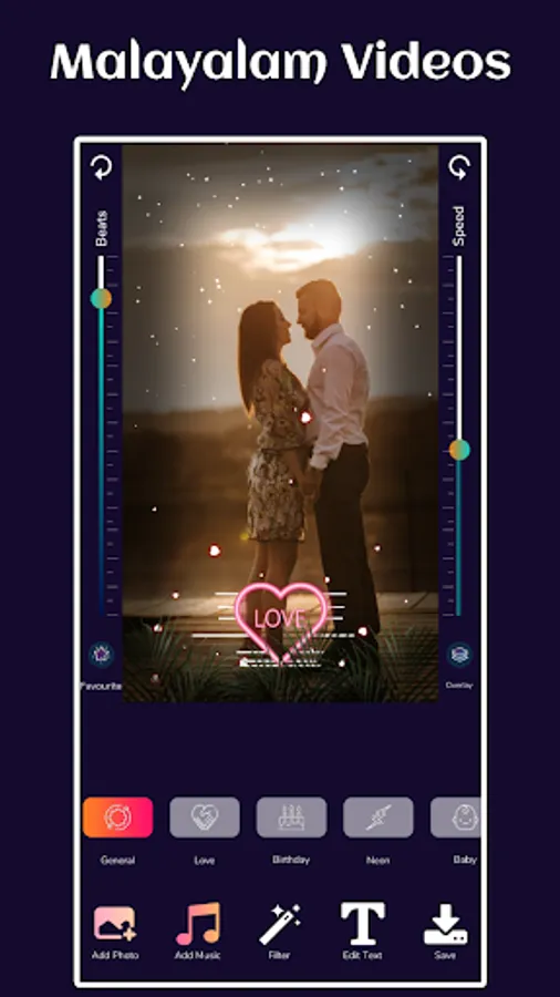 Do you like to create photo to video status with malayalam songs? Do you like to create an amazing malayalam lyrical video status with your photos? then you are the absolute right place to create a beautiful malayalam video status maker app. We are provding you malayalam anniversary video status, malayalam birthday video status maker, malayalam baby shower lyrical video status, malayalam sad video status maker, malayalam festival lyrical status, malayalam trending lyrical video status maker, love malayalam video status maker, etc. you have a many choice to make your photo to malayalam short video status.