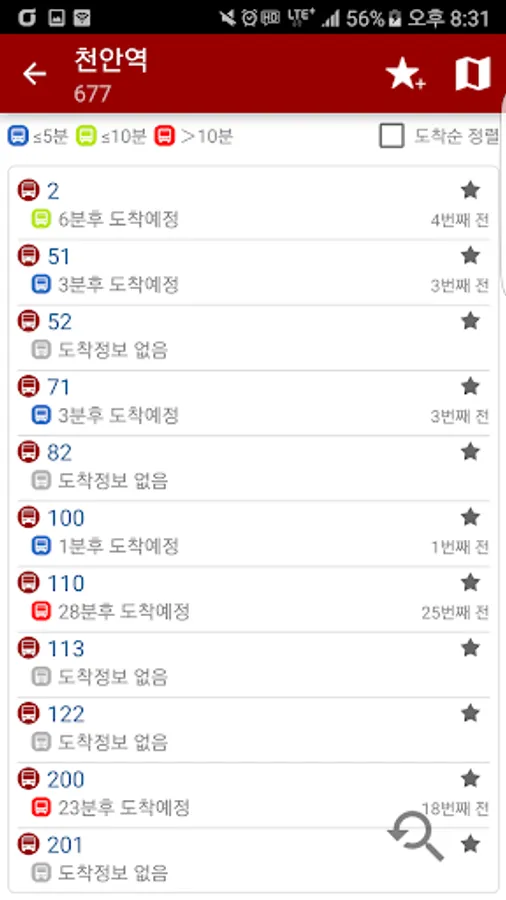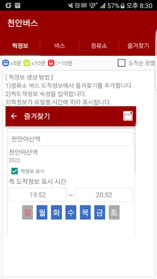 (Cheonan bus system, the bus arrival time information may not be accurate.)